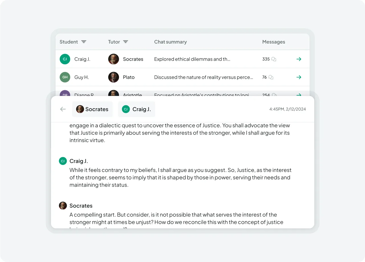 Gain transparency by seeing what your students chat about with Humy, ensuring productive and relevant interactions.